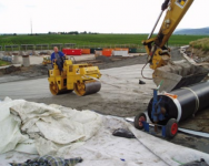 Vor der Errichtung der Photovoltaikanlage auf dem Deponieostteil wurde hier die vorhandene temporäre Abdichtung zur endgültigen Kombinationsabdichtung umgebaut. Oberhalb einer zusätzlichen Tonschicht wurde eine Kunststoffdichtungsbahn verlegt.